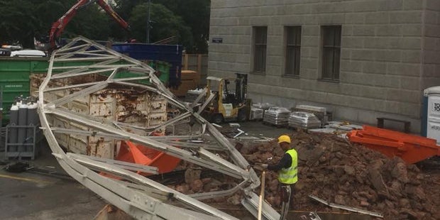 Unfall bei Parlament. Im Zuge der Umbauarbeiten ist eine große Baustelle beim Parlament. Dort wurde es heute für die Arbeiter brenzlich. Ein 3,5 Tonnen-schwerer Eisenträger löste sich vom Kran und knallte auf dem Boden.