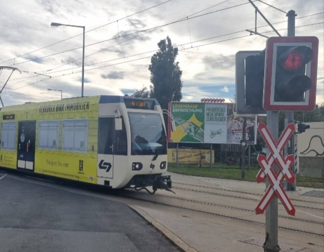 Ein Pkw ist am Mittwoch in Traiskirchen (Bezirk Baden) mit einer Garnitur der Badner Bahn kollidiert.