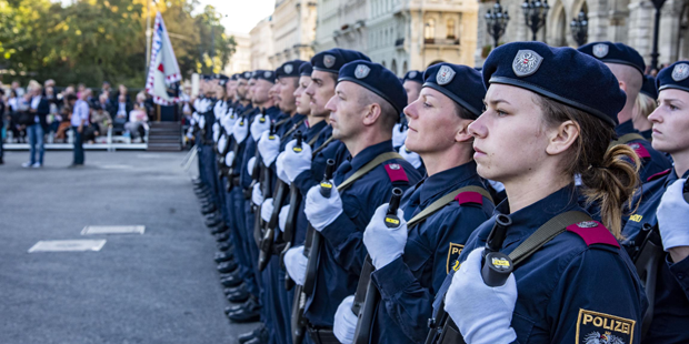 Die Reden richteten sich neben dem Publikum auch an künftige Polizisten. Im Zuge des Festaktes wurde ein neuer Jahrgang Polizeischüler angelobt, ein weiterer wurde nach erfolgreicher Grundausbildung ausgemustert.