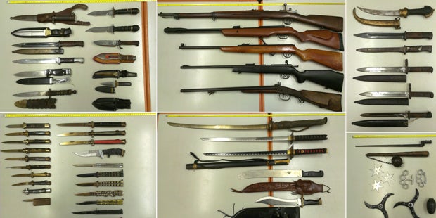 Neben neun Gaspistolen wurden auch sieben Schwerter sichergestellt.
