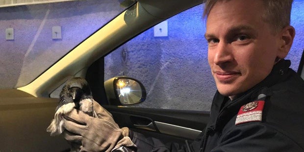 Der Vogel kam zur weiteren Versorgung in die Veterinärmedizinische Universität Wien. Zuvor posierte das Tier aber noch im Streifenwagen für ein Foto mit seinem Retter. Ob die Krähe von einem Auto angefahren wurde, war nicht bekannt.
