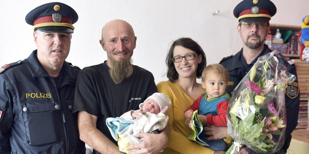 Gegen 14.00 Uhr sprach ein sichtlich sehr aufgebrachter Autolenker in Wien-Meidling die beiden Beamten, die sich gerade in der Eichenstraße befanden, an und bat mit dem Worten "Bitte verständigen Sie mir dringend die Rettung, meine Frau bekommt ein Kind!" um Hilfe.
