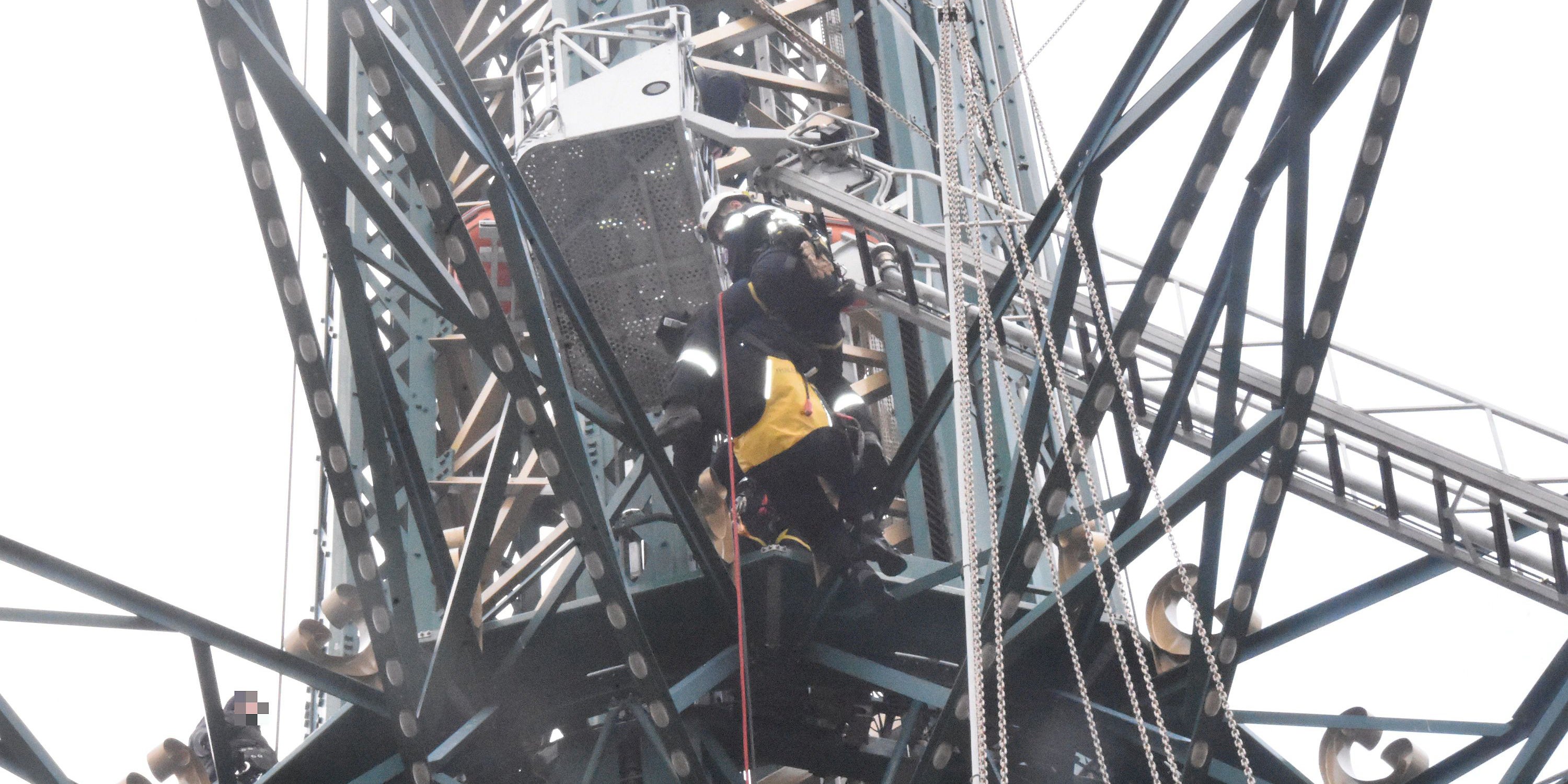 Die Einsatzkräfte wurden um 11.45 Uhr von Kollegen des Arbeiters alarmiert. Der Verletzte befand sich auf einem kleinen Podest und konnte aus eigener Kraft nicht mehr absteigen. Die Höhenretter stiegen zum Arbeiter auf und legten ihm ein sogenanntes Rettungstuch als Abseilhilfe an. Zeitgleich positionierten die Einsatzkräfte vorsorglich zwei Sprungkissen. "Eine Rettung über den inneren Bereich des Turms war aus Platzgründen nicht möglich", erläuterte Figerl in einer Aussendung. Der Drehleiterkorb der Feuerwehr diente beim Abseilen als Sicherungsfixpunkt.