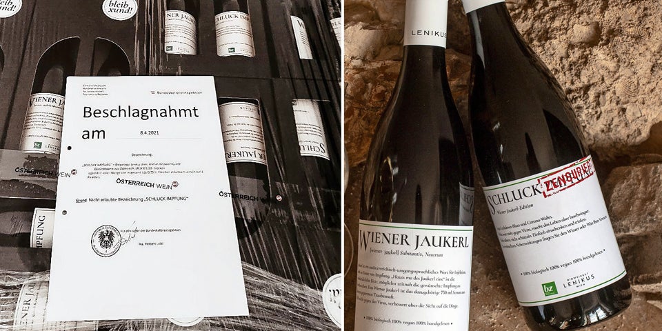 Die ''Schluck Impfung'' des Bioweinguts Lenikus wurde beschlagnahmt.