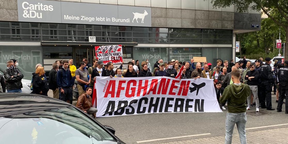 Wien. Am Freitagnachmittag versammelten sich nur etwa 50 Teilnehmer bei einer angemeldeten Kundgebung der Identitärem vor dem Caritas Asylzentrum auf der Triesterstraße in Wien-Favoriten. Der Grund für die Demo war der Mordfall Leonie (13) bei dem vier Afghanen derzeit als Tatverdächtig gelten. Eine Gruppe Rechtsextremer forderte nun bei der Kundgebung eine generelle Abschiebung aller afghanischer Flüchtlinge. Zeitgleich fand eine linke Gegendemonstration statt.