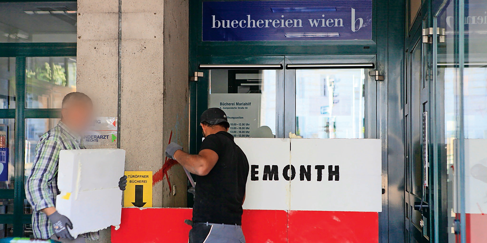 Wien. In Wien ist vor dem Eingang einer Bücherei-Zweigstelle in der Nacht auf Freitag eine Mauer errichtet worden - mit der Aufschrift "nopridemonth". Auf einen rechtsradikalen Hintergrund verweisen auch Flugblätter, die dort verstreut wurden. Die Störaktion richtete sich gegen eine für heute angekündigte Lesung der Drag-Queen Candy Licious. Politische Vertreter aus Wien und dem Bund sowie die HOSI-Wien reagierten mit Entsetzen.