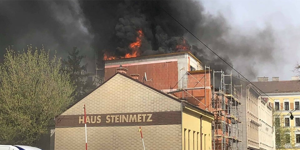 Am Donnerstag kam es in Wien-Penzing zu einem Vorfall auf einer Baustelle. Bei Arbeiten in der Bumgartenstraße fing Dämmmaterial sofort Feuer. Riesige schwarze Rauchsäulen stiegen von dem Dachstuhl über dem 14. Bezirk empor. Der Brand soll gegen 15 Uhr ausgebrochen sein.