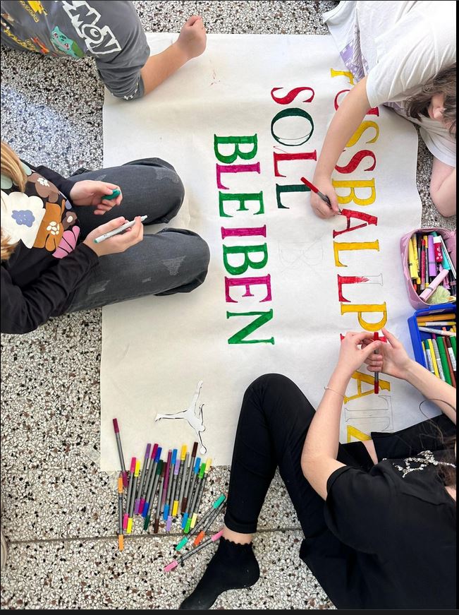 „Viele Kinder haben sich diese Schule nur ausgesucht, weil es diesen tollen Sportplatz gibt. Wir brauchen frische Luft, unsere Schülerliga braucht diesen Platz zum Trainieren. Dadurch wird unser Ruf als Schule mit Sportschwerpunkt zerstört. Wir haben gelernt, dass es in Österreich ein Mitspracherecht bei wichtigen Entscheidungen gibt. Das ist eine wichtige Entscheidung. Und niemand fragt uns.“