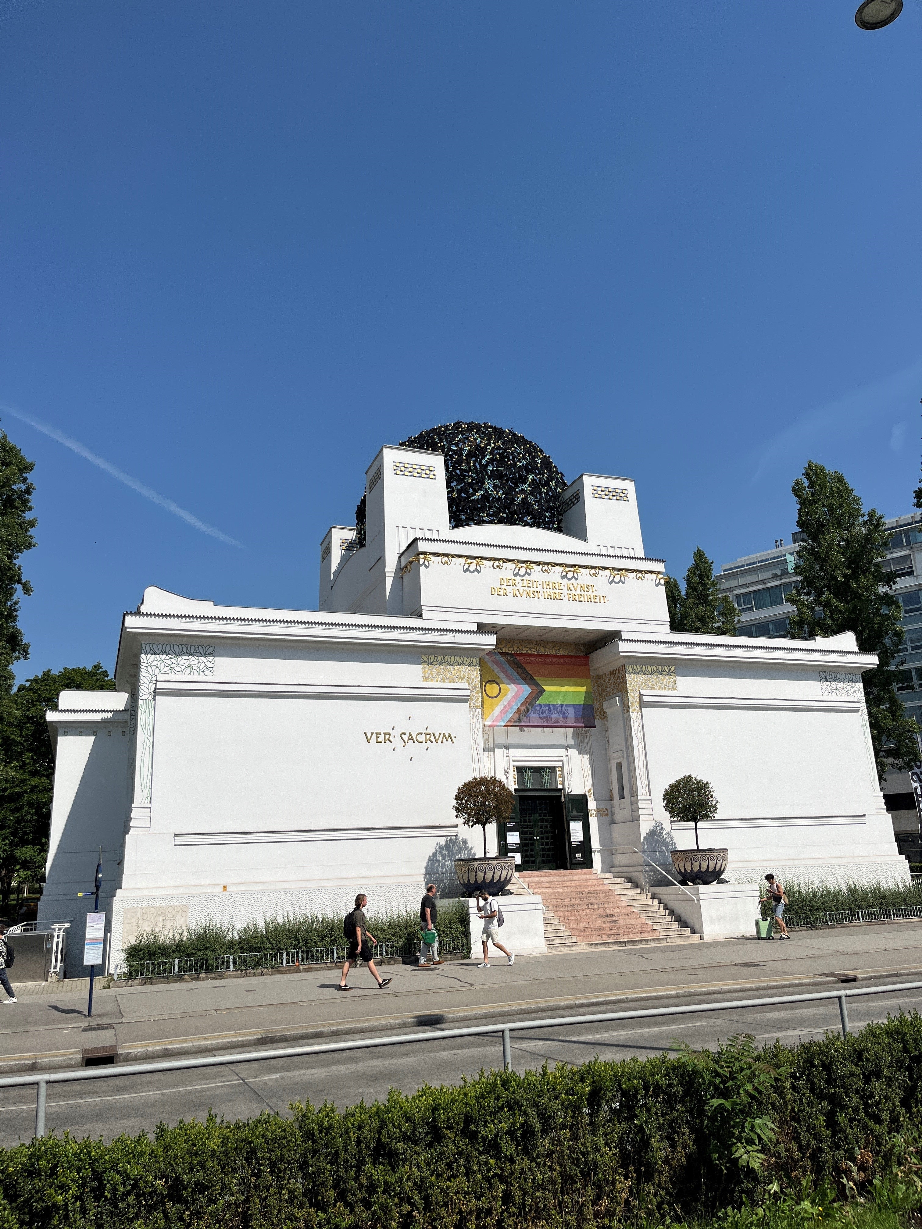 Die Kuppel der Wiener Secession strahlt derzeit nicht in ihrem gewohnten Gold. Die Künstlerin Susana Pilar Delahante Matienzo überzog für ihre Ausstellung "Achievement" die rund 2.500 goldene Blätter des Jugenstilbaus mit über 1.000 schwarzen Strumpfhosen.