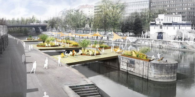 Überplattungen verbinden Donaukanal-Promenade und Kaiserbadschleuse.