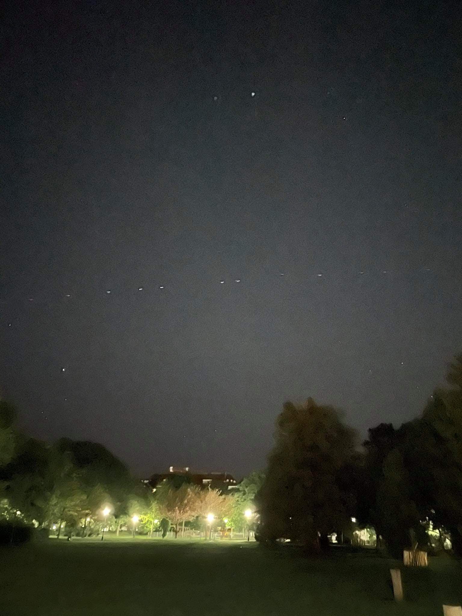 Eine ungewöhnliche Reihe an sternenähnlichen Leuchtkörpern beeindruckte in der vergangenen Nacht heimische Himmelsbeobachter. Fotos von oe24-Reportern aus dem Kongresspark im 16. Wiener Gemeindebezirk zeigen deutlich mehrere Himmelskörper, die eine seltsame Formation hatten: Denn wie die Wiener, die am Einkaufsamstag vor den Geschäften Schlange standen, befanden sich auch die vermeintlichen Sterne "wie aufgefädelt" in Reih und Glied.