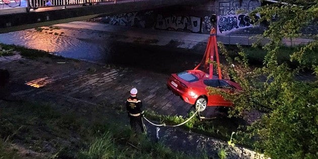 Was dazu führte, dass der Pkw das Geländer der Brücke durchbrach, ist noch ungeklärt und Gegenstand von Ermittlungen. Der rote Sportwagen konnte bereits von der Feuerwehr geborgen werden. Als die Einsatzkräfte gegen 3.30 Uhr an der Unfallstelle eintrafen, saß der Fahrer noch hinterm Steuer – das Wasser reichte bis zu den Türschwellern und stieg durch den nächtlichen Regen rasch an. Der Mann war schwer geschockt und erlitt durch den Aufprall Verletzungen unbestimmten Grades.