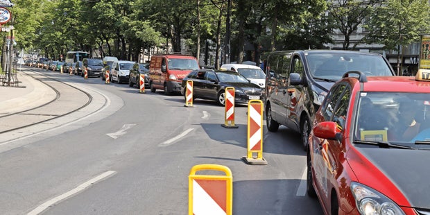 Gleisbauarbeiten sorgen seit vergangenem Mittwoch für eine Ringsperre zwischen Babenbergerstraße und Schottengasse. Der unausweichliche Monster-Stau hatte die Ausweichroute über Museumstraße, Landesgerichtsstraße und Universitätsstraße schon letzte Woche fest im Griff – und da waren viele Wiener aufgrund des Feiertages gar nicht da.