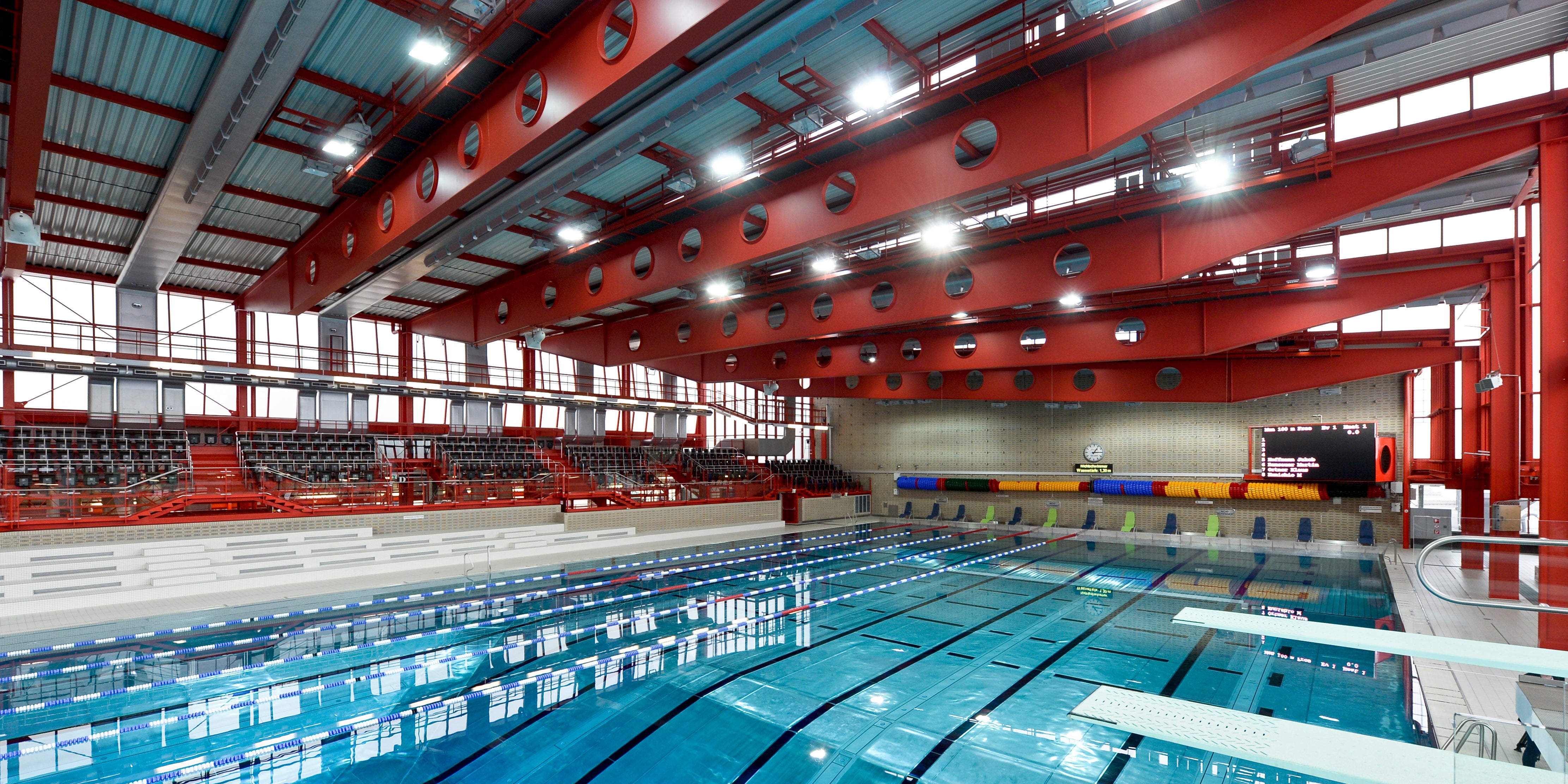 Das Stadthallenbad ist Wiens größte Sportschwimmhalle mit einem 50-Meter-Hauptbecken, zwei weiteren Schwimmbecken, Sprungturm und Sauna.