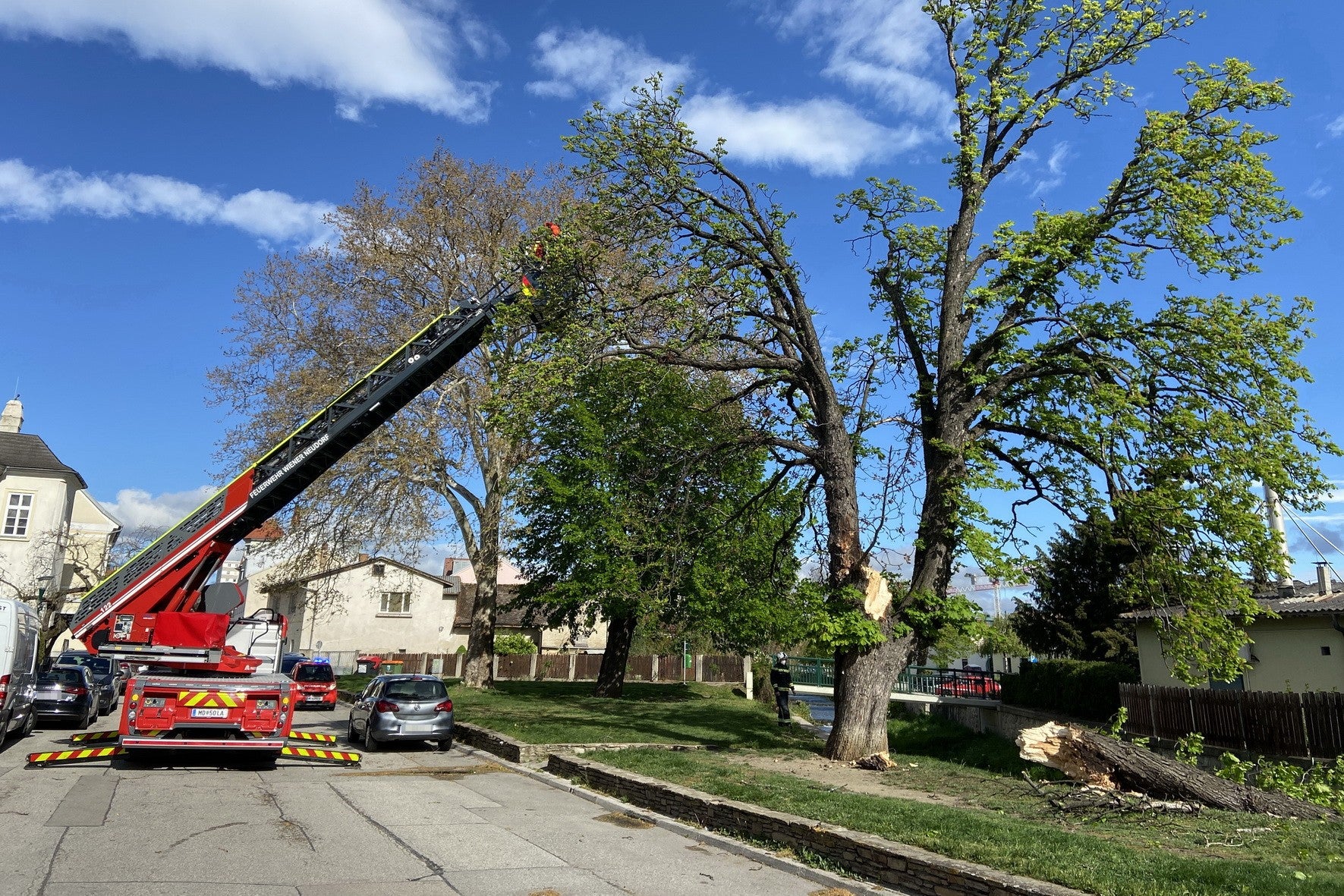 Ein Helfer in Traiskirchen von Baumkrone getroffen, ein weiteres Opfer in Gerasdorf bei Wien.