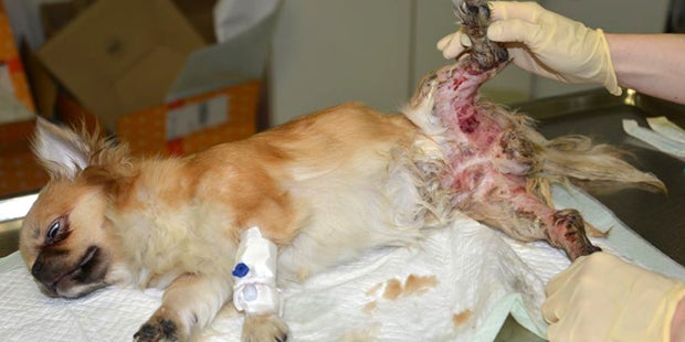 Bei der genauen Untersuchung durch Tierärzte bot sich laut einer Aussendung des Wiener Tierschutzvereins ein schreckliches Bild: Die etwa einjährige Hündin war überwiegend in Bandagen eingewickelt, von denen der Verwesungsgeruch ausging. Fast der gesamte Körper der Hündin war mit tiefgreifenden, eitrigen und nässenden Wunden sowie Hautablösungen übersät. Den Tierärzten zufolge handelt es sich dabei mit hoher Wahrscheinlichkeit um Brandverletzungen.