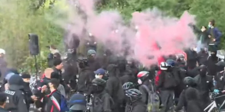 Bei der Kundgebung im Resselpark, wo etwa 1.000 Teilnehmer waren, kam es zu einem Aufeinandertreffen mit dem Schwarzen Block der Antifa. Die Polit-Aktivisten – etwa 150 Personen – kamen auf Fahrrädern um die Demo der Corona-Gegner zu stören. Sie zündeten Bengalos und die Polizei versuchte sie zurückzudrängen. Dabei kam es zu Tumulten.