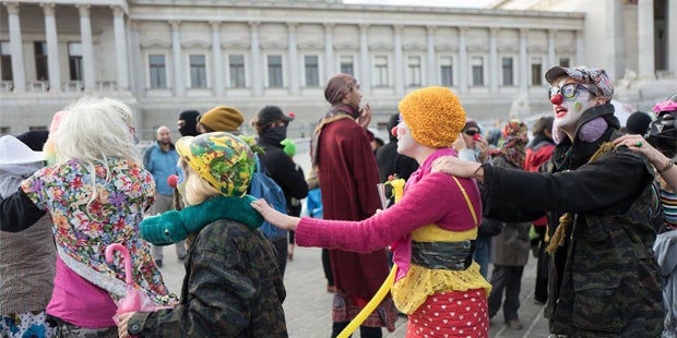 Das heute, Sonntag, in Kraft getretene Gesichtsverhüllungsverbot hat schon zu ersten Anzeigen geführt. Angezeigt wurden allerdings nicht konservativ verhüllte Musliminnen, sondern Clowns - bei dem aus Protest gegen das "Burka-Verbot" organisierten "Traditionellen Clownspaziergang" vor dem Parlament. Drei maskierte Teilnehmer wurden nach dem Anti-Gesichtsverhüllungsgesetz angezeigt.
