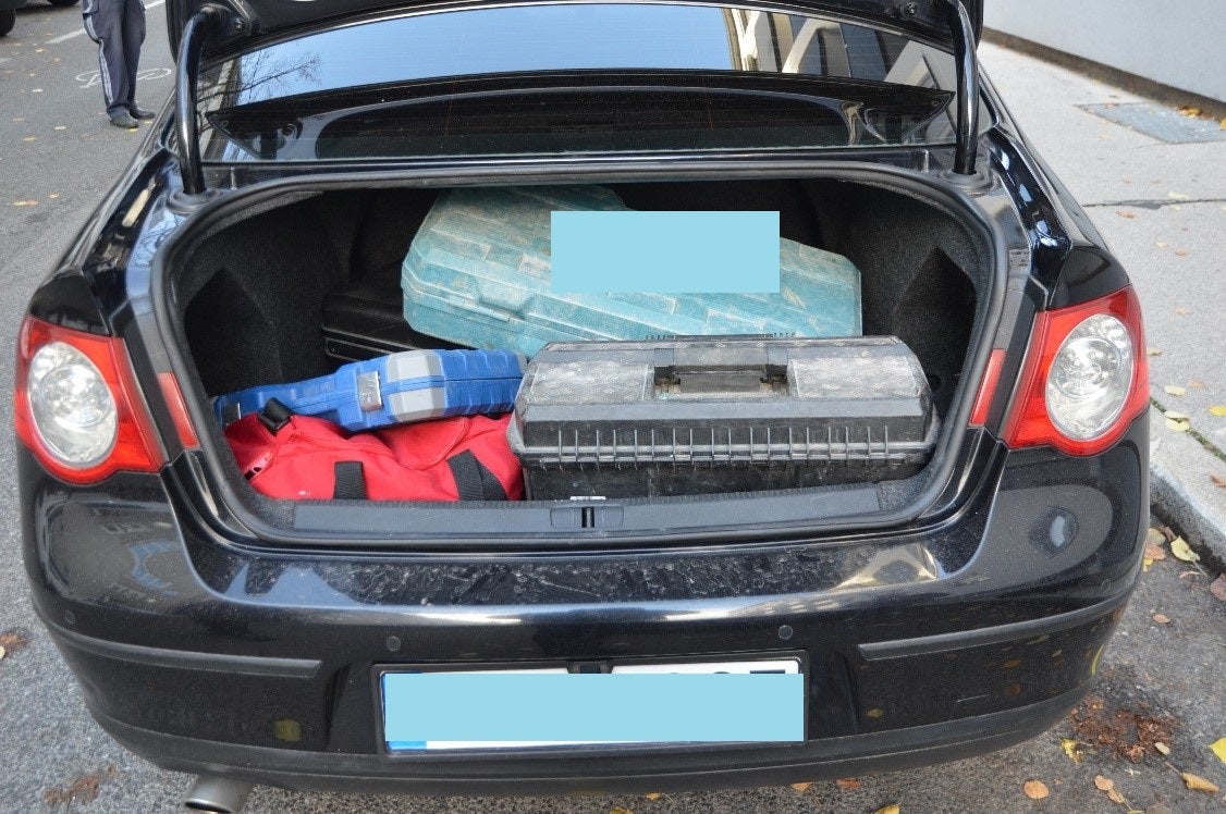 Da kurz zuvor in der Nähe der Unfallstelle in ein Auto eingebrochen worden war und die Beamten auf der Rückbank diverses Werkzeug, das unter einer Decke versteckt war, wahrnahmen, durchsuchten sie das Fahrzeuginnere. Im Kofferraum wurden weitere Werkzeugkoffer - teilweise mit Glassplittern darauf - aufgefunden. Wie sich herausstellte, handelte es sich um Utensilien, die zuvor aus dem aufgebrochenen Pkw gestohlen worden war. Die beiden Männer wurden festgenommen.