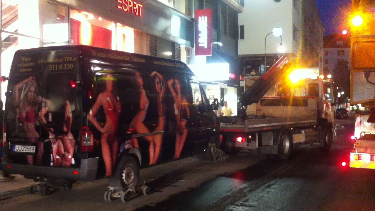 Aufruhr in der Wiener City: Seit knapp einer Woche werben Kastenwagen mit ungarischen Kennzeichen für ein Luxus-Laufhaus. Nicht nur die abgebildeten leichtbekleideten und tiefdekolletierten Damen erregten die Gemüter; die Porno-Busse stehen gerne im Halteverbot und sammeln Strafzettel - einige haben sich schon eine Park-Kralle "eingefangen".
