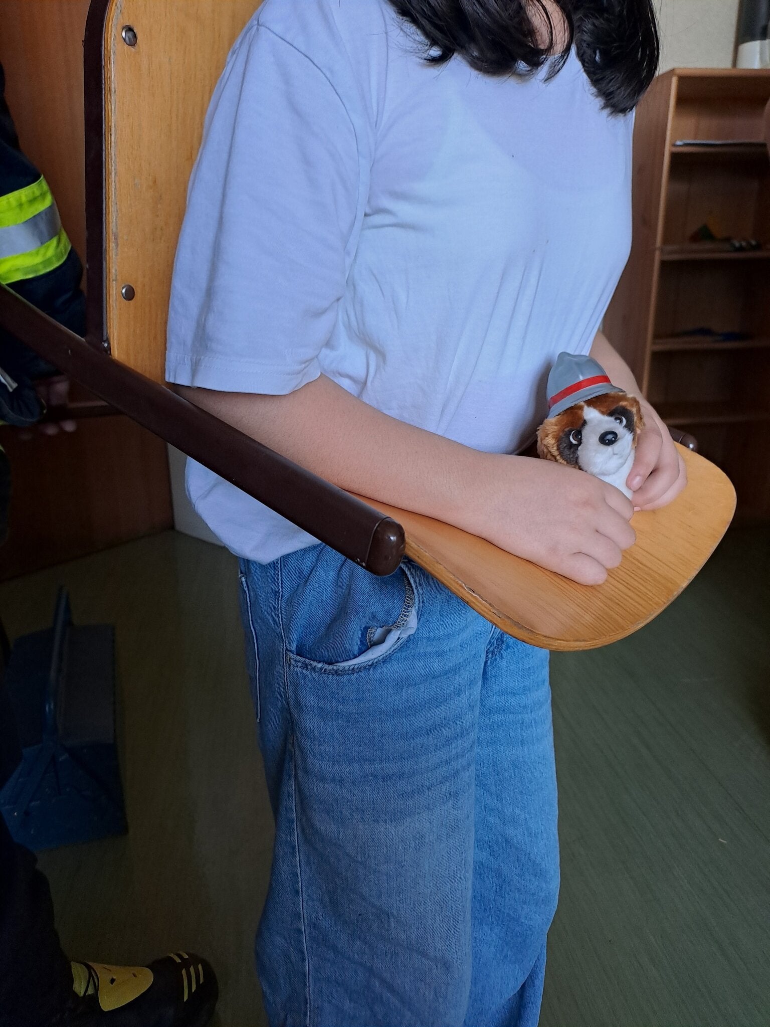 Mit einem Akkuschrauber mussten die Einsatzkräfte die Nieten der Rückenlehne öffnen. Das Kind konnte unverletzt aus seiner misslichen Lage gerettet werden. Während des Einsatzes durfte das Mädchen ein Stofftier der Feuerwehr zur Ablenkung in den Händen halten und dann sogar als Erinnerung behalten.