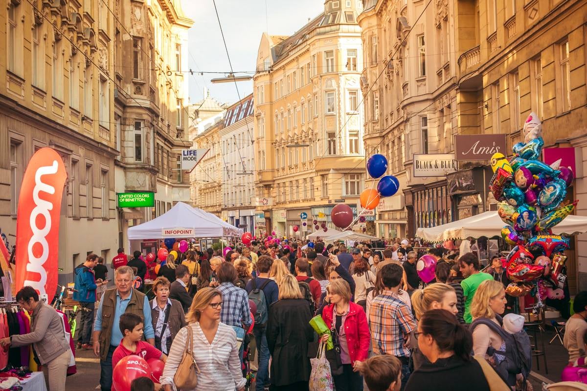 Vom Gürtel bis zum Aumannplatz bietet das Fest Street Food, Flohmärkte und Markstände mit jeder Menge Kunsthandwerk.