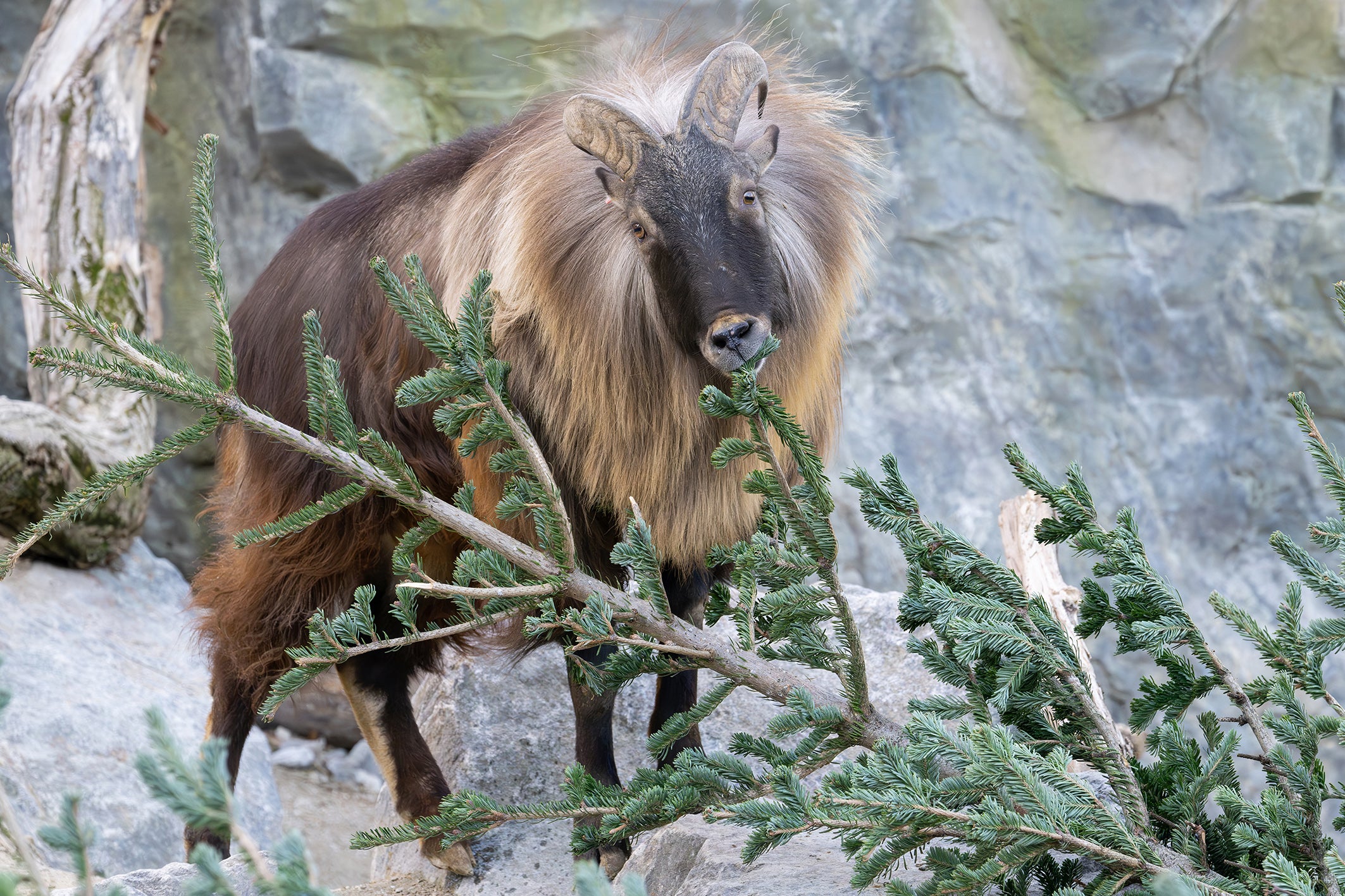 Die vergangenen Monate waren für die 25 Himalaya Tahre eine spannende Zeit, welche erst im September die neu gestaltete Anlage bezogen. Auf 1.400 Quadratmetern ist dort eine Gebirgslandschaft für die trittsicheren Tiere entstanden, wo sie heute ihre Weihnachtsbaum-Snacks serviert bekamen. "Himalaya Tahre sind reine Pflanzenfresser. Neben Heu stehen auch Äste auf ihrem Speiseplan, wobei sie besonders die Rinde und Triebe bevorzugen. Der große Weihnachtsbaum ist für unsere Tahre aber nicht nur Futter, sondern auch ein außergewöhnliches und willkommenes Ereignis. Neugierig klettern sie auf dem Baum herum", so Tiergartendirektor Stephan Hering-Hagenbeck.