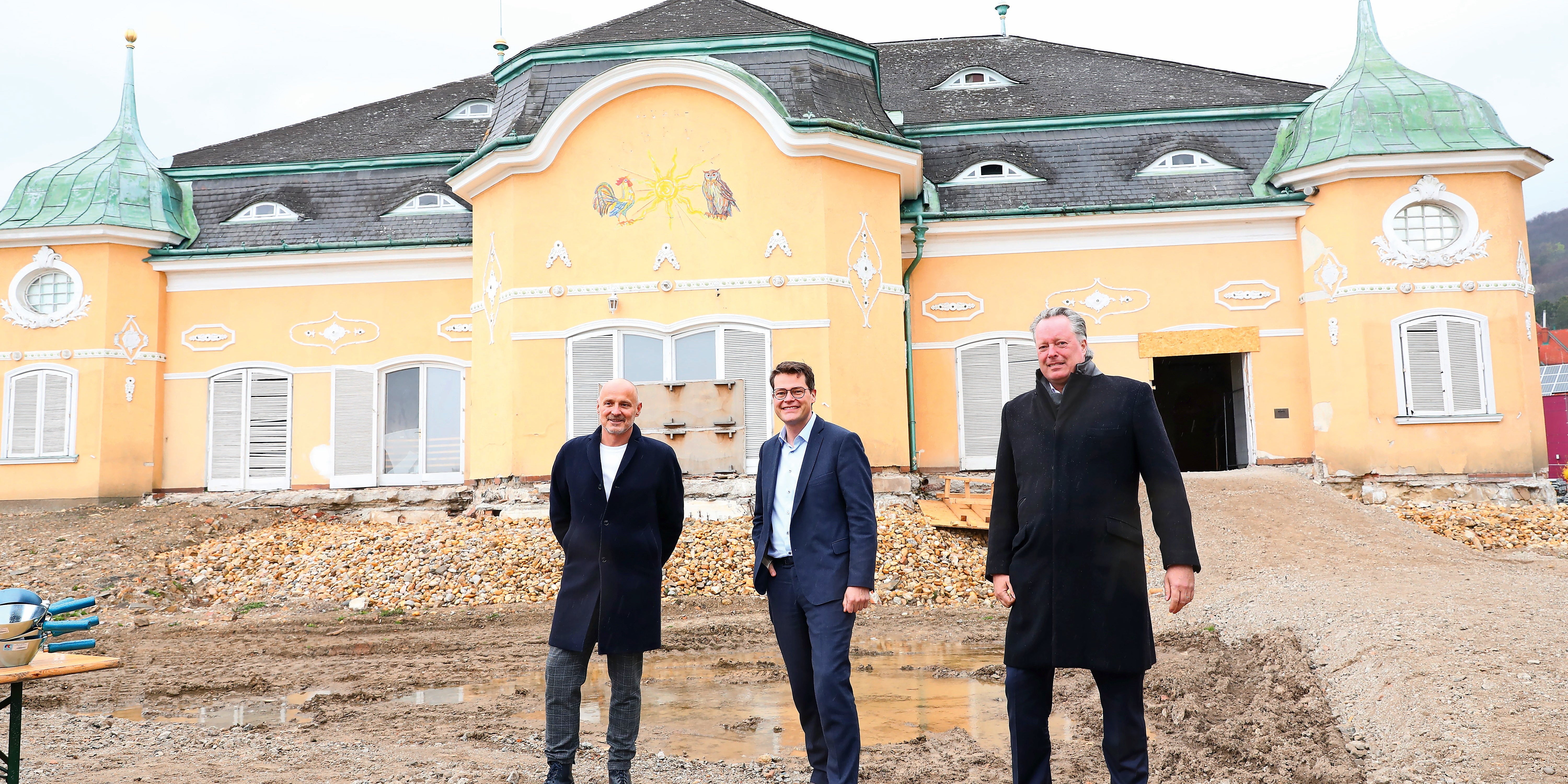 Döbling. Der Cobenzl soll ab 2022 in neuem, alten Glanz erstrahlen. Das versprachen am Montag bei der Grundsteinlegung für das Mega-Projekt „Weitsicht Cobenzl“ Stadtrat Jürgen Czernohorszky und Top-Gastronom Bernd Schlacher, der gemeinsam mit der Stadt und der Supernova-Gruppe hier um 20 Millionen Euro die Vision eines kultigen Hotspots für die erholungssuchenden Wiener umsetzt.