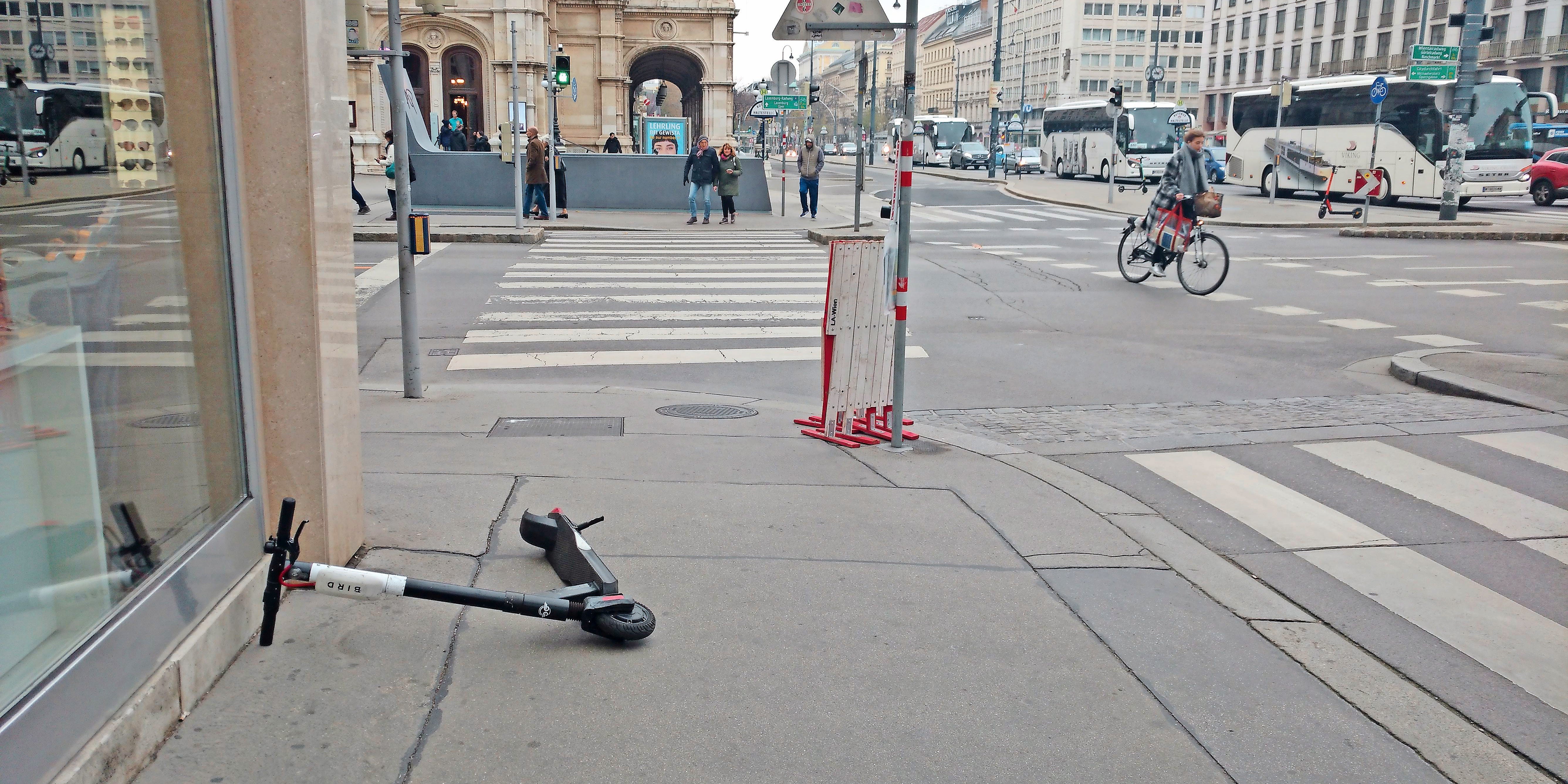 Wildwuchs. Die 9.000 E-Scooter in Wien dürfen laut der Stadt auf Gehsteigen, die mindestens zweieinhalb Meter breit sind, einfach abgestellt werden. Die meisten liegen herum und werden so zur Gefahr für die Umwelt.