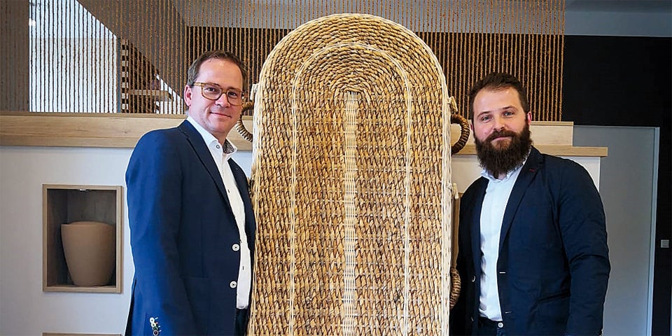 Bestatter Marijan Martinovic bietet mit seiner Firma Memoria Särge und Urnen aus Bananenblättern, Bambus oder Weideruten an. Jetzt gab es Probleme. Eine Bestattung wurde gestoppt, eine Zulassung soll fehlen, tatsächlich dürfte ein Konkurrent Anzeige erstattet haben.