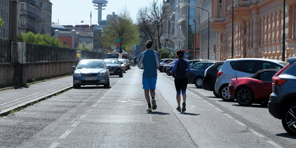 Als zwei einsame Jogger vorbeilaufen, ergänzt er: „Wer hier mit dem Auto schräg parkt, muss jetzt neben Radlern und Querverkehr auch noch Jogger beim Ausparken fürchten. Das wird grimmig.“