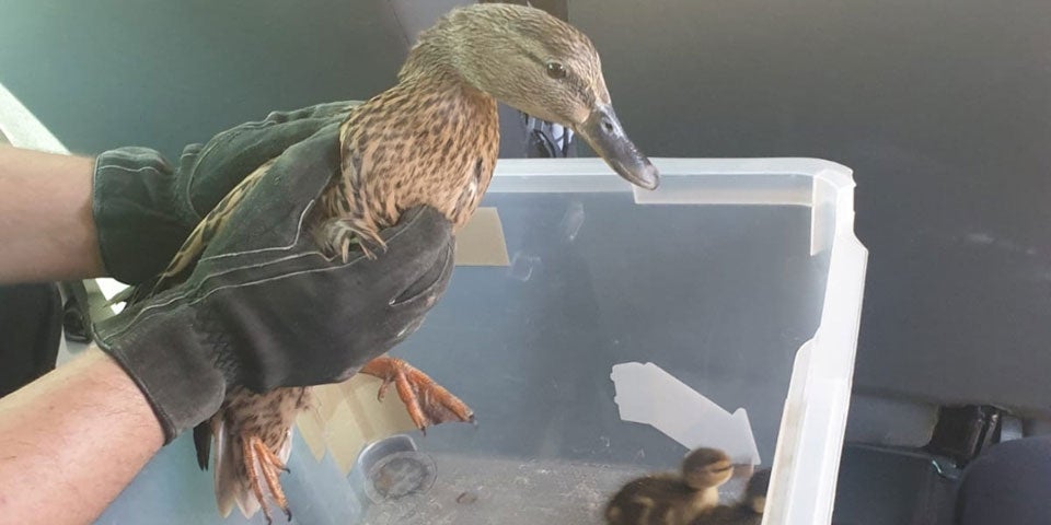 Beamte der Polizeiinspektion Sibeliusstraße wurden am 9. April um 10.00 Uhr im Zuge ihres Fußstreifendienstes auf eine Entenfamilie im Gemeinde-bau aufmerksam, wie die Polizei in einer Aussendung schreibt. Die bei der Stiege 32 herumirrenden Enten (eine Mutter und 10 Küken) wurden von den Polizisten „eingekesselt“, um nicht auf die nahegelegene Fahrbahn zu laufen.