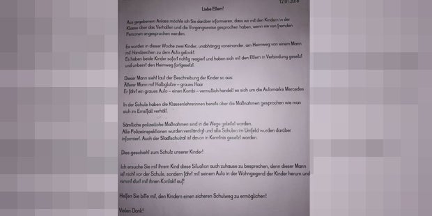 Auch die Polizei und der Stadtschulrat wurden bereits informiert. Nun wurden Eltern aufgefordert, solche Fälle auch zu Hause mit den Kindern zu besprechen, da der Verdächtige auch in der Wohngegend herumfährt.