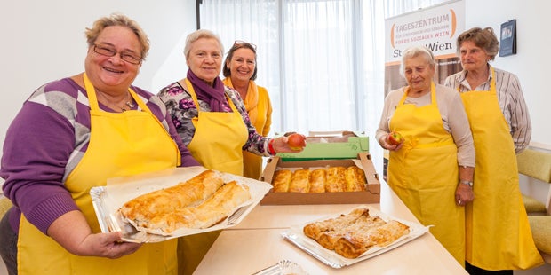 Über die "Wiener Tafel" wurden von der Landwirtschaftskammer Österreich für drei Tageszentren für Seniorinnen und Senioren mehr als 15 Kilogramm Äpfel zur Verfügung gestellt, die dank der Aktion "Rettet die Äpfel" nun Flüchtlingen zu Gute kommen. In den drei Tageszentren Simmering, Baumgarten im 14. Bezirk und Winarskystraße im 20. Bezirk wurden aus diesen Äpfeln am 3. Oktober insgesamt 21 Strudel gebacken.