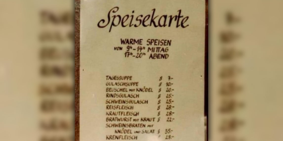 Am 8. Februar um 20 Uhr wird man beim Schwaigerwirt wirklich in Schillingpreisen zahlen können. Auf der Speisekarte stehen etwa eine Tagessuppe um 7 Schilling (0,51 Euro), ein Rindsgulasch um 25 Schilling (1,82 Euro) oder auch ein Schweinsbraten mit Knödel und Salat um 35 Schilling (2,54 Euro). Unfassbar günstige Preise also, von denen man heutzutage normalerweise nur träumen kann!