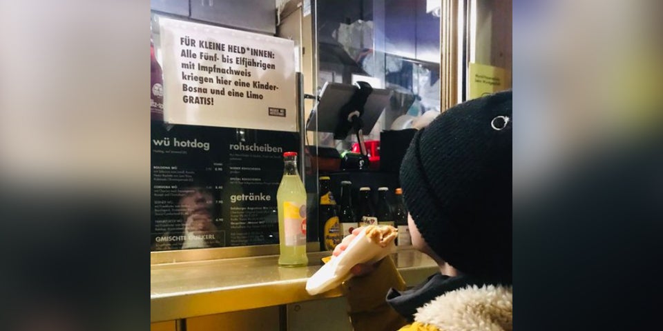In Wien hat sich ein Würstelstand eine Belohnung einfallen lassen: Geimpfte Kinder bekommen beim "Wiener Würstelstand" im 8. Bezirk (Ecke Pfeilgasse/Strozzigasse) ein Gratis-Bosna und Limo. Auf Facebook wird die Aktion angekündigt: "Liebe Eltern, wenn ihr eure kleinen Held*innen für den Pieks ein wenig belohnen wollt: Ab sofort gibt es bei uns für alle Fünf- bis Elfjährigen mit Impfnachweis eine Kinderbosna und eine Limo gratis."