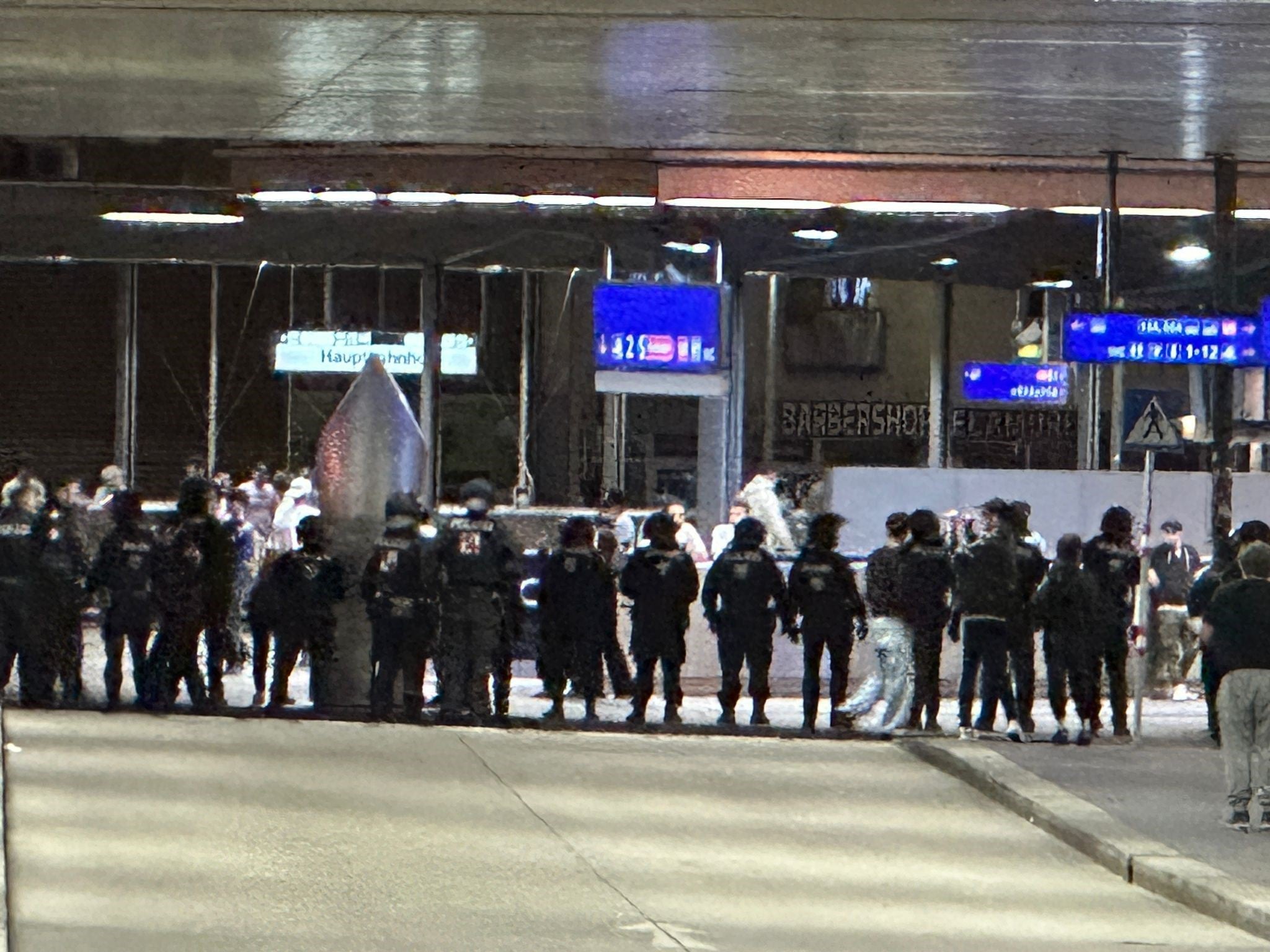Bilder in den sozialen Medien zeigten ein größeres Aufgebot von Beamtinnen und Beamten beim Bahnhof. Berichten zufolge soll es mehrere Festnahmen gegeben haben.