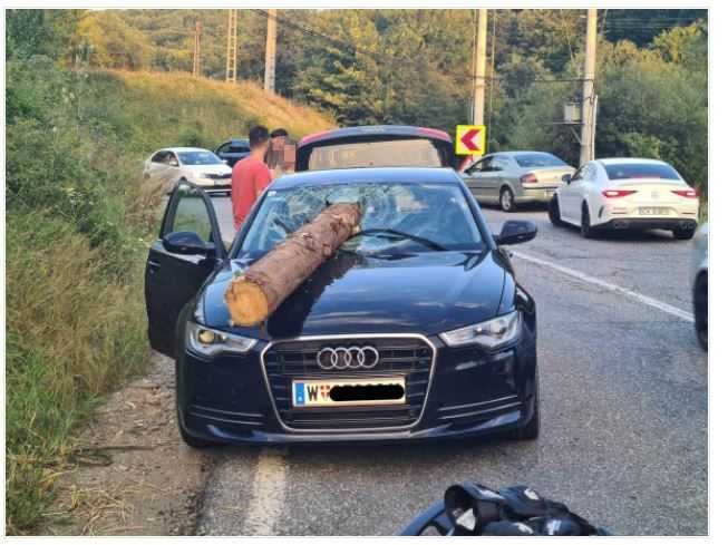 Gepfählt in Rumänien - was nach einem Dracula-Film klingt, war Montagabend ein spektakulärer Unfall (mit Happy End) auf der DN 10 nahe der Stadt Teliu. Dort war ein in Covasna zugelassener Lastwagen mit mehr als 40 Tonnen Hölzern auf dem Sattelaufleger als auch auf dem Anhänger unterwegs. Was die dahinter fahrenden Wiener in ihrer Audi-Limousine nicht wussten: Die Ladung war völlig ungesichert, es soll nicht einmal Spanngurte gegeben haben.