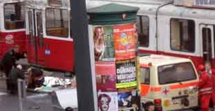 Pensionist erlitt schwere Verletzungen beim Überqueren der Siemensstraße und wurde von Tram gerammt. Er musste mit dem Rettungshubschrauber ins Krankenhaus gebracht werden.