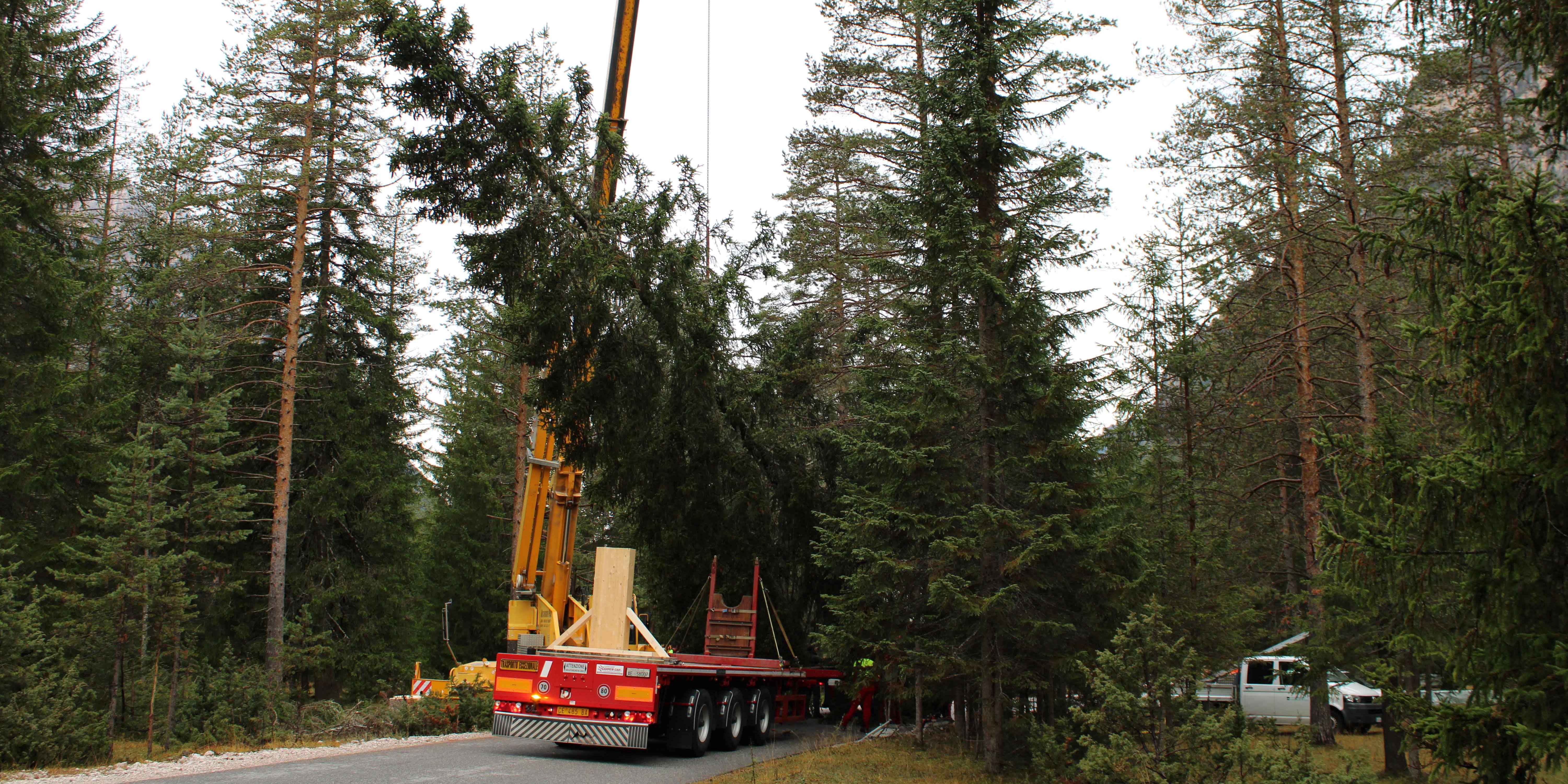 Die 28 Meter hohe und rund 115 Jahre alte Fichte wurde am Montag im Rautal am Enneberg im Südtiroler Naturpark Fanes-Sennes-Prags gefällt.
