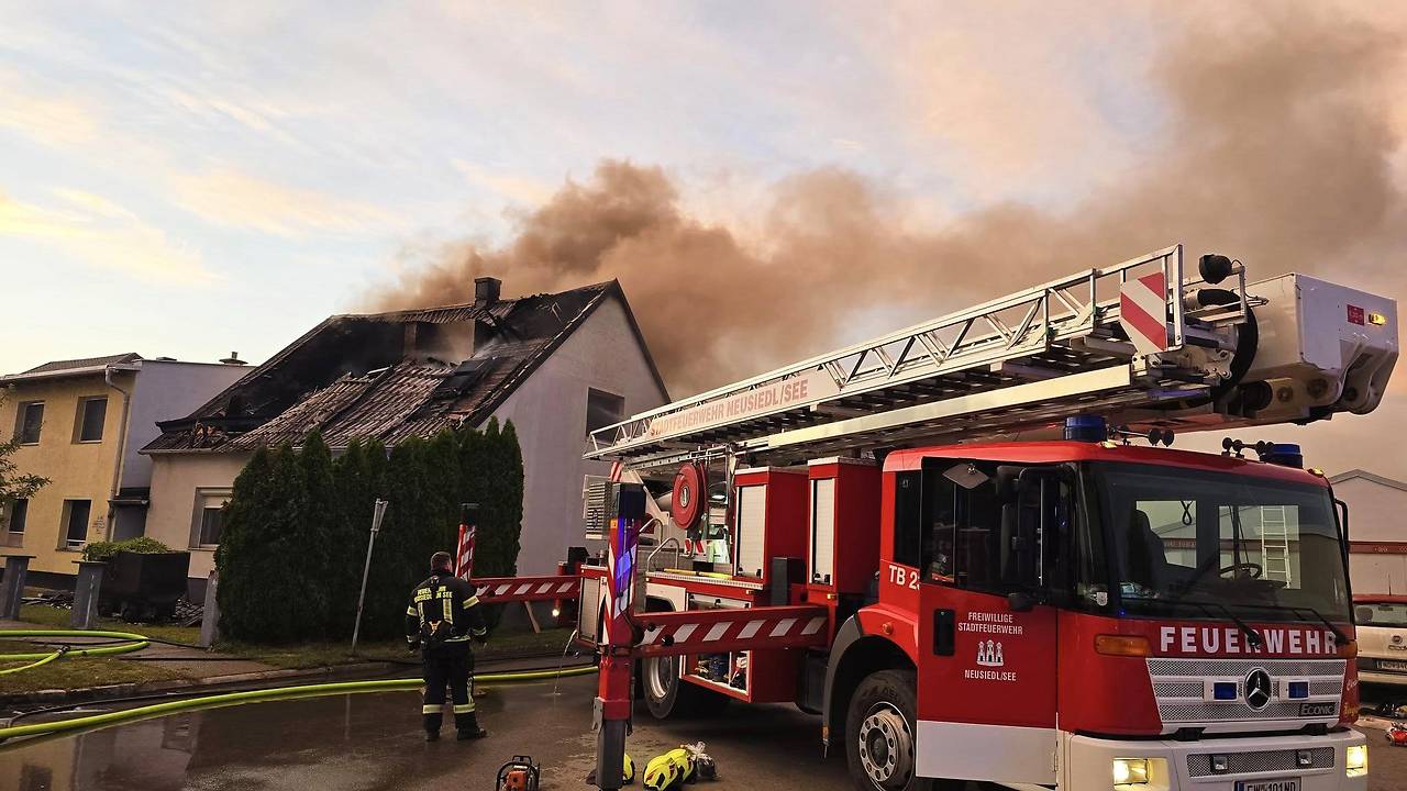 Bgld. Großeinsatz in der Nacht auf Montag bei einem Einfamilienhaus in Andau, Bezirk Neusiedl am See: Sechs Feuerwehren waren bei dem Feuer im Einsatz. Der Sohn der Hausbesitzerin hatte gegen 23 Uhr Alarm geschlagen, als er der Brand bemerkte. Das Feuer dürfte beim Kamin des Hauses ausgebrochen sein und sich rasant ausgebreitet haben.