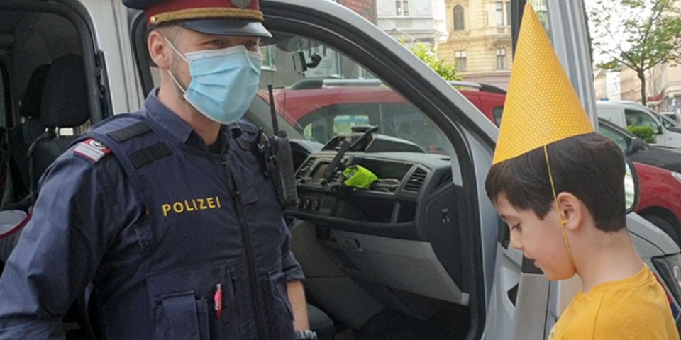 Tolle Aktion! Weil die Geburtstagsfeier von einem 10-jährigen Buben ausfiel, macht die Wiener Polizei dem Buben eine besondere Überraschung. Das Geburtstagskind dufte im Funkwagen mitfahren.
