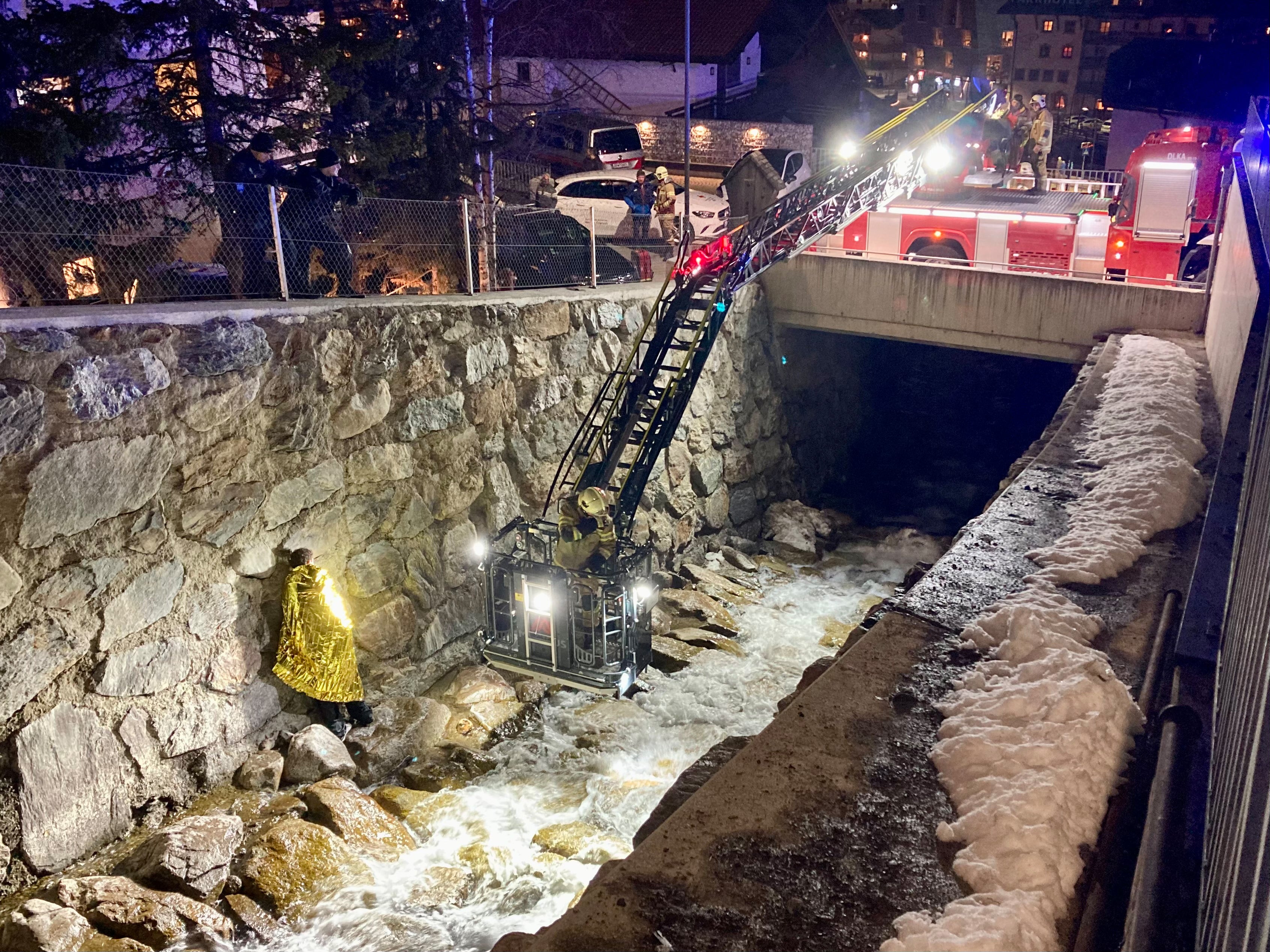 Der mittlerweile leicht ernüchterte, aber noch immer stark alkoholisierte 20-Jährige wurde von der Freiwilligen Feuerwehr Sölden mittels Drehleiter aus dem Bachbett geborgen und in weiterer Folge in das Krankenhaus nach Zams eingeliefert. Durch den Sturz in das Bachbett erlitt der Mann Verletzungen im Bereich des Gesichtes und des Oberkörpers sowie eine Unterkühlung und hatte nur noch 31 Grad Körpertemperatur.
