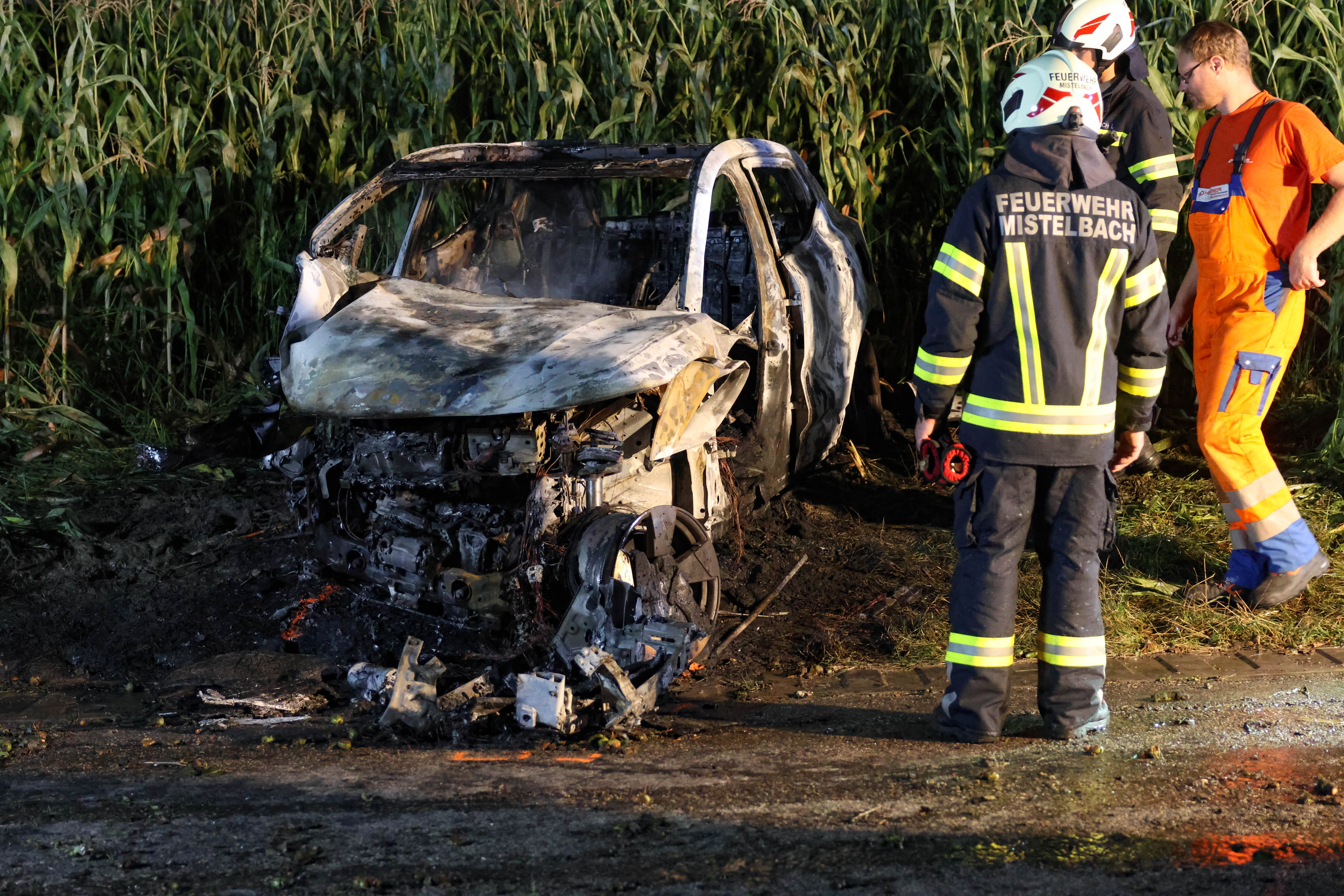 Ein Elektrofahrzeug prallte frontal gegen einen Baum in Buchkirchen und ging anschließend in Flammen auf. Die beiden Insassen konnten sich offenbar nicht retten und starben in dem Feuer. Vorerst war unklar, wer genau in dem Fahrzeug gesessen hatte, weil das Auto beinahe zur Gänze ausgebrannt war und weder Kennzeichen noch Fahrgestellnummer ersichtlich waren.