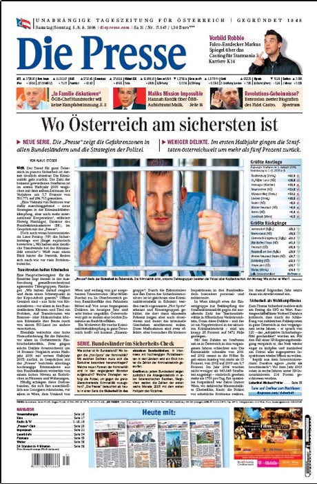 oe24.at Inland Österreich Die Presse 07.08.06, 10:36 | Aktualisiert: 12.07.10, 18:32 Teilen 07.08.2006 Die Presse: Titelseite vom 07.08.2006 © oe24 Fehler im Artikel gefunden? Jetzt melden. Die Top-Stories vom oe24 E-Paper ESC-Hit: ER gewinnt den Song Contest in Wien! Totes Baby an Grenzübergang: Mädchen wurde getötet Eklat im Parlament: "Keine Zähne, zerrissene Hose" Das steckt hinter Bellinghams provokantem Bier-Jubel "Schneewittchen" als Top-Favorit für die Anti-Oscars Stocker in Davos: Treffen mit Kurz und Selenskyj EU-Parlament blockiert Mercosur-Abkommen Bandenkrieg in Meidling: Haupttäter kassiert sechs Jahre Haft Putin trifft am Donnerstag US-Sondergesandten Witkoff