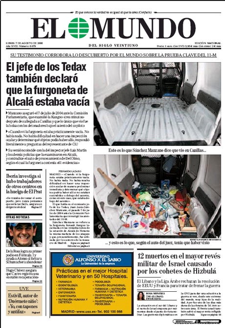 oe24.at Inland Spanien El Mundo 07.08.06, 10:10 | Aktualisiert: 12.07.10, 18:31 Teilen 07.08.2006 El Mundo: Titelseite vom 07.08.2006 © oe24 Fehler im Artikel gefunden? Jetzt melden. Die Top-Stories vom oe24 E-Paper Bandenkrieg in Meidling: Haupttäter kassiert sechs Jahre Haft Putin trifft am Donnerstag US-Sondergesandten Witkoff Totes Baby an Grenzübergang: Mädchen wurde getötet "Schneewittchen" als Top-Favorit für die Anti-Oscars Stocker in Davos: Treffen mit Kurz und Selenskyj ESC-Hit: ER gewinnt den Song Contest in Wien! Eklat im Parlament: "Keine Zähne, zerrissene Hose" EU-Parlament blockiert Mercosur-Abkommen Das steckt hinter Bellinghams provokantem Bier-Jubel