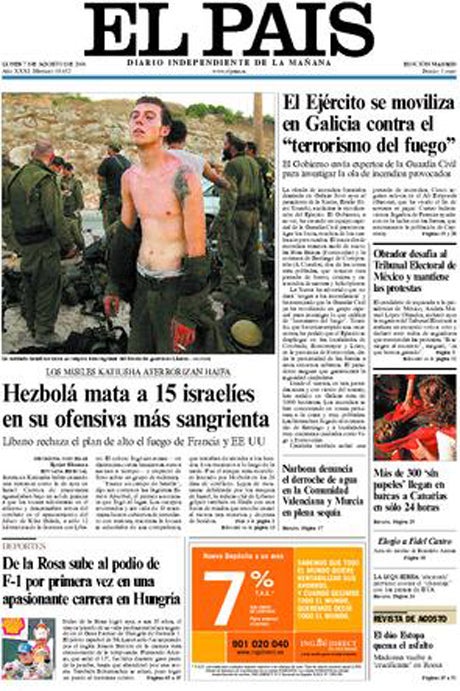 oe24.at Inland Spanien El Pais 07.08.06, 10:09 | Aktualisiert: 12.07.10, 18:31 Teilen 07.08.2006 El Pais: Titelseite vom 07.08.2006 © oe24 Fehler im Artikel gefunden? Jetzt melden. Die Top-Stories vom oe24 E-Paper Opernball-Hammer: "Die Nanny" Fran Drescher ist Stargast in der Lugner-Loge US-Außenminister: Mullahs schwächer als je zuvor Swarovski & Ostrowski als ESC-Duo: 1. Seitenhieb bei ORF-Pressekonferenz "Depperte Aktion" – 10 Jahre Haft für Bim-Sniper Kino-Desaster: Trump-Doku „Melania“ hat in Wien bislang noch kein Ticket verkauft "Reifen aufgeschlitzt" - Ärztin im Pilnacek-Ausschuss packt aus Ohne zu zahlen von Hotels abgehauen - Einmietbetrügerin in Tulln gefasst "Morning Coffee Rave" lockt prominente Morgenmuffel an