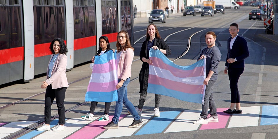 Vielfalt und Solidarität am Alsergrund: Im 9. Bezirk gibt es jetzt den ersten Transgender-Zebrastreifen Österreichs.