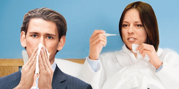 Hust! Schnief! Krächz! Ganz Österreich ist im Viren-Ausnahmezustand. Auch vor der Prominenz machen die Erreger keinen Halt. Die ORF-Talkerin Vera Russwurm und Ehemann Peter Hofbauer husten derweil im Gleichtakt. Voll erwischt hat es auch Staatssekretär Sebastian Kurz. Der Integrationsbeauftragte muss mit 39 Grad Fieber das Bett hüten, hat alle Termine und Interviews für diese Woche abgesagt.
