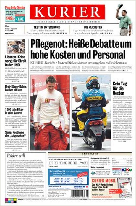 oe24.at Inland Österreich Kurier 07.08.06, 10:34 | Aktualisiert: 12.07.10, 18:31 Teilen 07.08.2006 Kurier: Titelseite vom 07.08.2006 © oe24 Fehler im Artikel gefunden? Jetzt melden. Die Top-Stories vom oe24 E-Paper Nach TV-Kritik: DJ Ötzis Tochter rechnet mit den Hatern ab Koalitions-Streit: Muslime-Posting sorgt weiter für Wirbel Benko bleibt über Weihnachten im Gefängnis Aus Rache: Jugendbande quälte, missbrauchte und filmte drei Burschen Hass-Sniper zielte auf Bundespräsidenten Transfer-Hammer: Dragovic vor Winter-Abgang bei der Austria